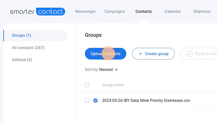 Upload your property contacts into SmarterContact to begin SMS outreach. 8020REI provides a special formatted file that lets you include more than the standard 4 phone numbers per property.