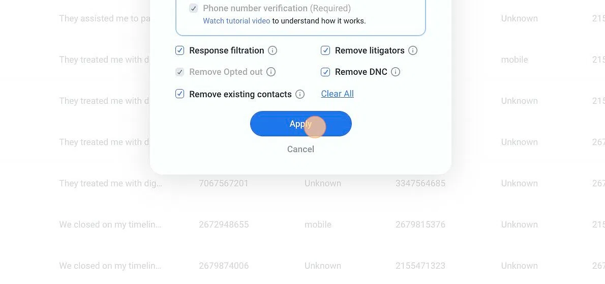 Map the columns in your CSV to the appropriate SmarterContact fields (Name, Phone Number, Address, etc.).