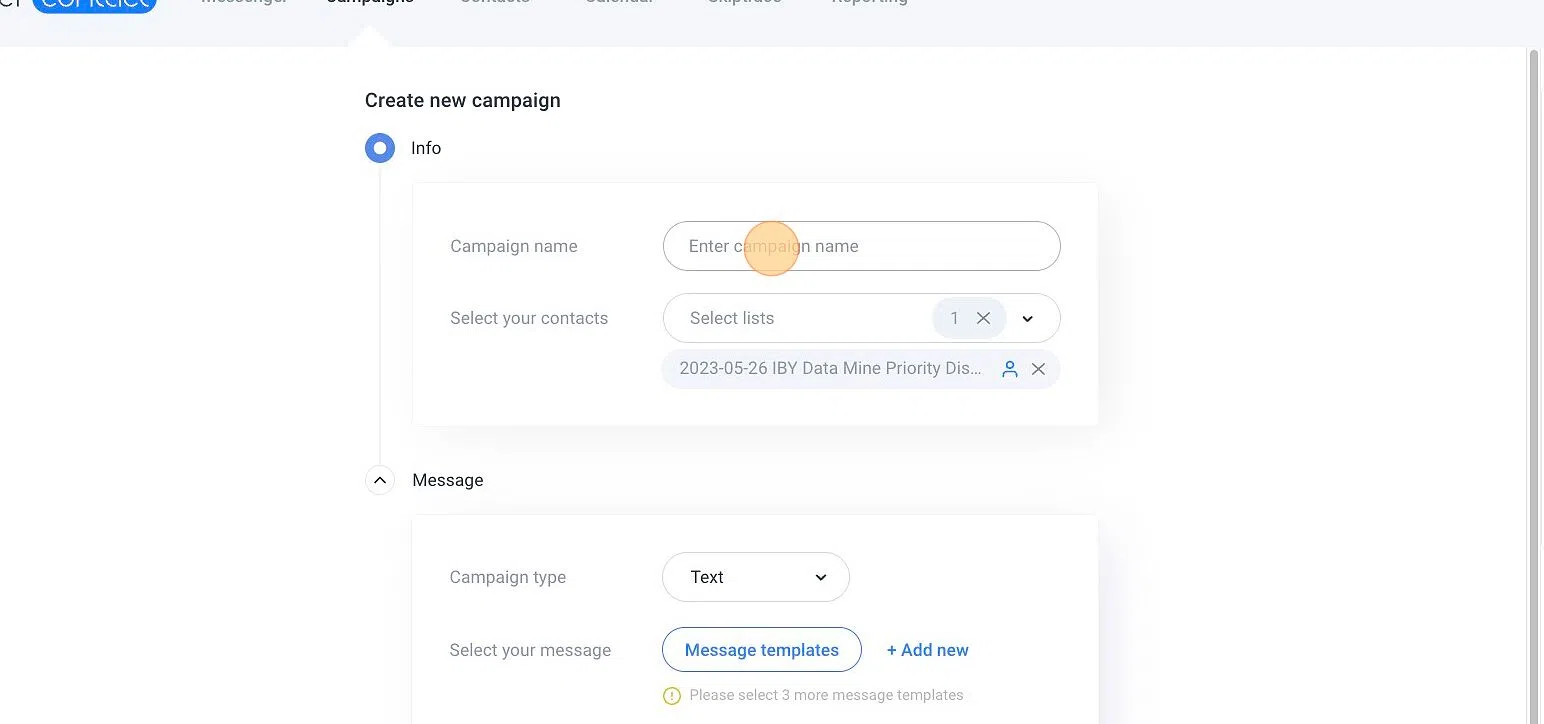 Create a SmarterContact campaign by selecting a contact group, choosing message templates, and configuring delivery settings. This guide walks through the full process from file selection to launch.